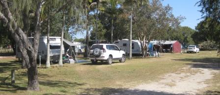 Amity Point Holiday Park is a wide, open, flat camping area with a number of large, shady trees. The holiday park was relatively empty when we visited.